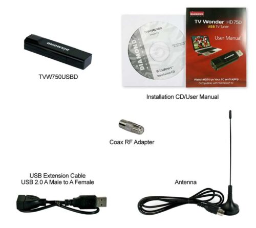 The Diamond TV Wonder HD 750 USB TV Tuner gives you the ability to watch, record and pause live ATSC digital TV on your Windows desktop or laptop PC. It’s slim, sleek and compact design makes a perfect entertainment solution whether you are at home, office or on the road. It’s your TV whenever and wherever you go!
